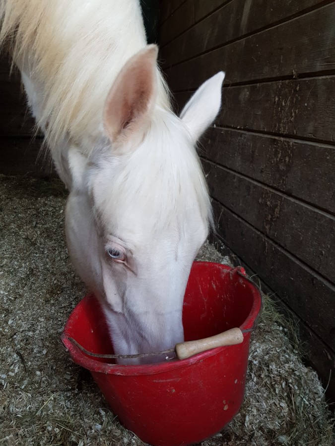 Pour elle j'ai essayé mouillé mais elle mange pas, sec, mélange avec du foin (elle mange pas), petit peu par petit peu et le résultat a toujours été le même
