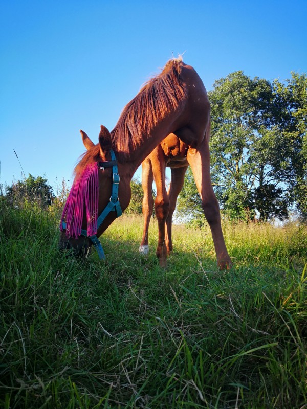 Coucou tout le monde ici, Baccara est retourné avec Heaven et cela ne s'est pas passé comme je l'avais imaginé. Je pensais qu'elle allait s'entendre de manière normal, genre je retrouve ma pouliche, je retrouve ma mère et bien non, Baccara est exécrable avec Heaven, la pouliche ne va pas particulièrement la voir, mais Baccara (qui est de nature super gentille pourtant), mord et passé son temps à baisser les oreilles à Heaven, alors qu'elle ne dit absolument rien à Havana la petite Haflinger. Est ce que c'est arrivé aussi chez vous ?