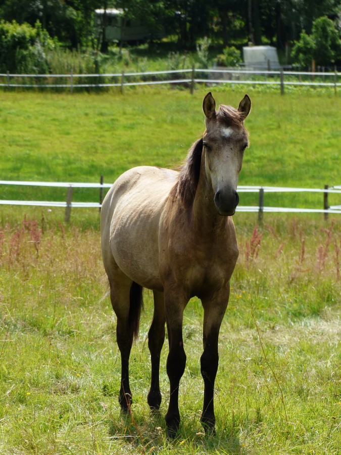 cavalierevendee oui c'est vrai que cette année elle a bien caramélisé. Le tien semble plus charbonné, Heaven l'est aussi mais c'est très zonée par endroit. Ce que je trouve dommage c'est que sa microscopique en-tête tend à disparaître. Maman a mis du blanc mais c'était juste pour faire genre. C'est du PRE aussi que tu as ? Nous c'est juste par le père la mère et KWPN par contre elle ressemble plus à un KWPN qu'à un PRE en ce moment. La même croissance que sa mère, mais avec un prise de gabarit plus importante à 15 mois