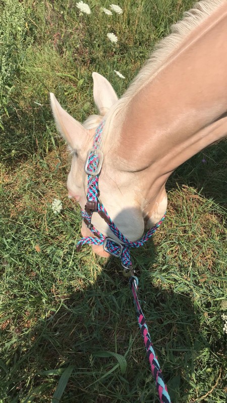 Par contre j'avais investi dans un chasse mouche à frange pour le soulager de toutes les bêbêtes volantes mais après de multiples essais il s'avère qu'il ne tient pas sur sa petite tête de poulain