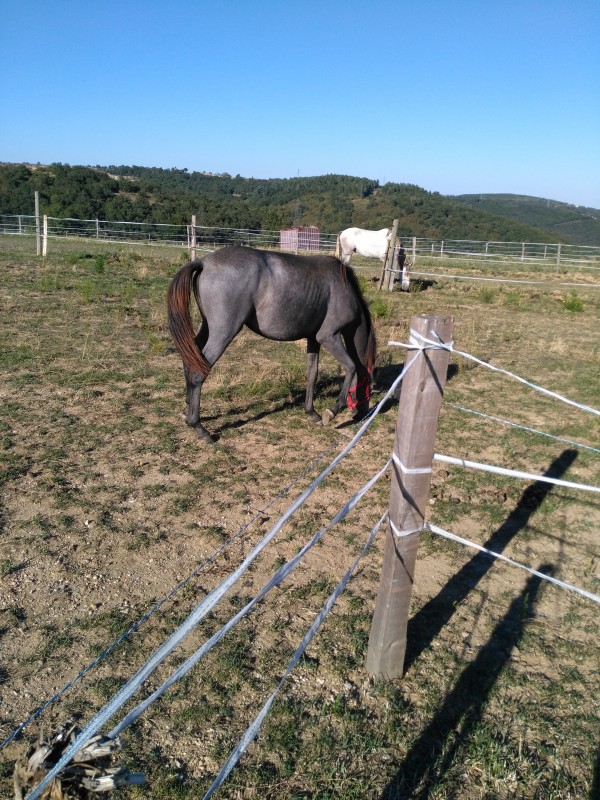 Elle est venue avec " son meilleur ami ", un cheval avec qui elle ai depuis son sevrage. Donc je vous laisse imaginer la séparation... Madame à décidé de sortir du rond de longe et de pousser les barrières Mais après sa, je l'ai mise dans son pré avec sa copine et tout va bien.