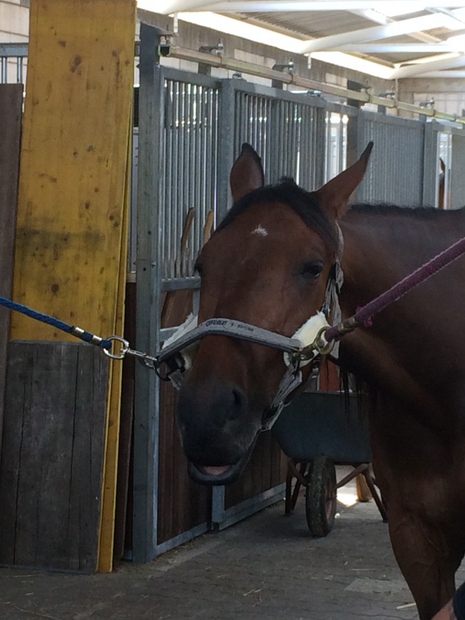 Bon et sinon je résiste pas à l'envie de vous montrer une photo d'elle avec le fameux licol, pendant qu'elle a vu le maréchal hier. Celle-là elle est magique :