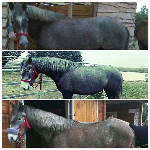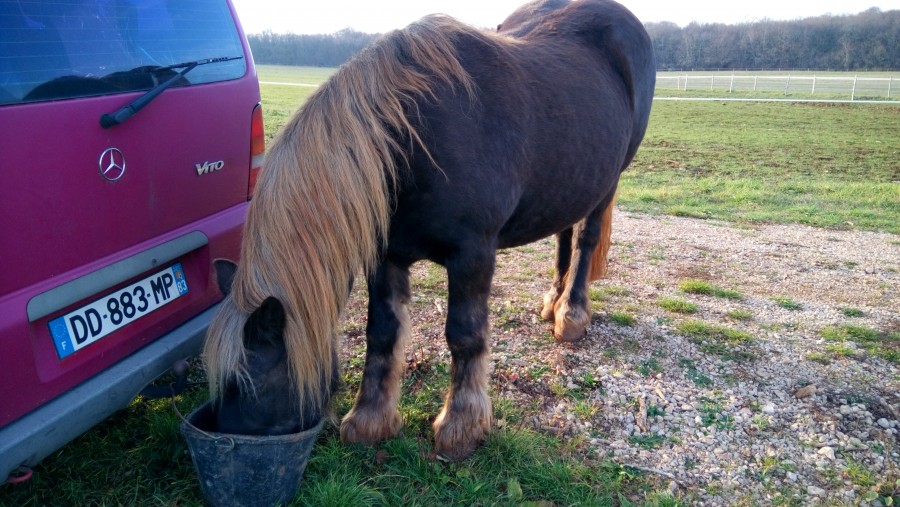 Du coup, avant l'hiver je lui ai fait une cure de vitamine C sous conseil du véto parce qu'il avait fait un abcès a un ganglion, ça a boosté les défenses immunitaires, et je trouve pas qu'il ait perdu d'état + c'est le poney qui a le plus de poils dans tout le club ! Je trempais les carottes dans la vitamine C, mais même là il a fini par être difficile.