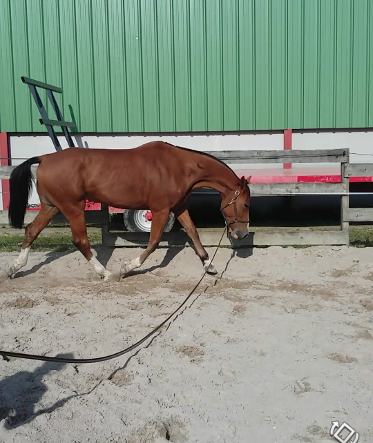 Après presque 2ans de travail, (quelques mois seulement avec le mors, avant il étais en hack), j arrive ENFIN aa avoir loulou en place, et même en extension ! Au pas et au trot après une grosse détente il est bas , rond, un peu enfermé mais bien bas et avec de l engagement et travail du dos, donc je ne m arrete pas à ce détail.