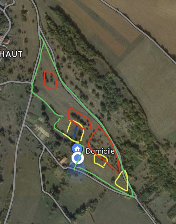 Mon autre parcelle est plus petite (3,5ha) mais il y a plus de belle herbe partout alors je pense que les grands bougent moins. Je verrai ca la semaine prochaine.