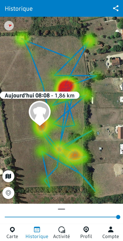 Ils ont un peu plus d'1,5 ha. Là il est au repos depuis sa dernière course donc depuis 3 semaines, je ne pense donc pas que ce soit du au travail