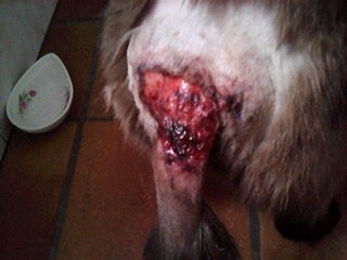 Bah là tu sais, si le véto te donne le nécessaire pour ne pas que ça s'infecte pour moi y'a rien d'autre à faire que de choisir un produit cicatrisant. En effet on ne peut pas suturer une plaie comme ça, car on voit qu'il manque de la peau et ce n'est pas profond.