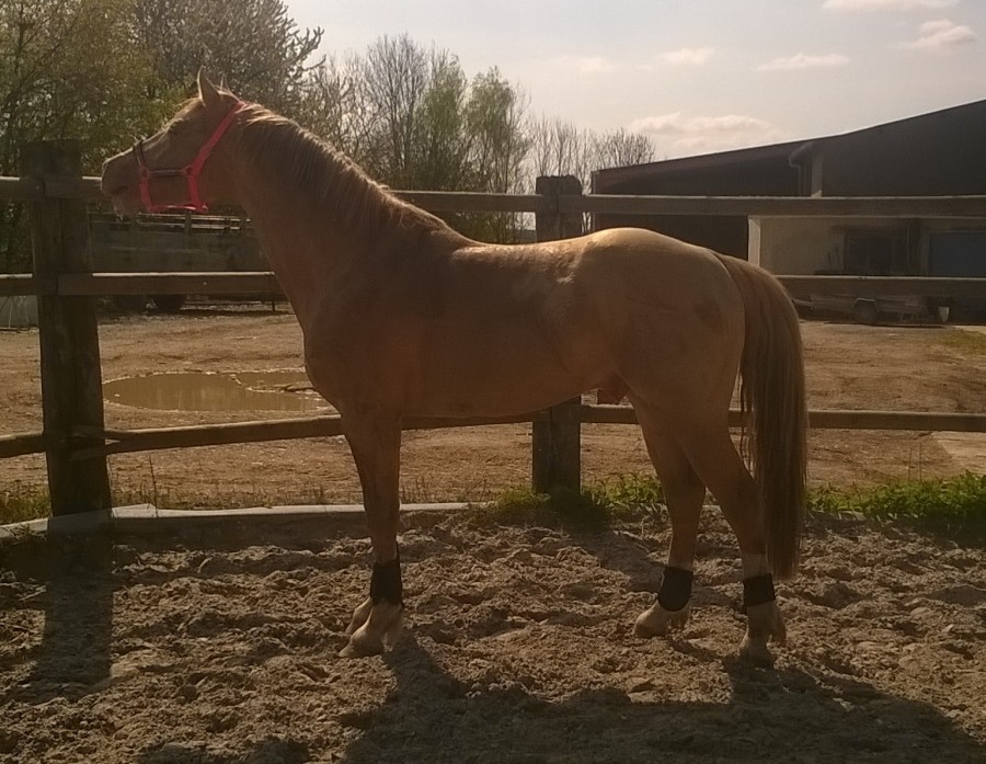 actuellement l'etalon qui m'est confié pour poulains 2017 est carat de la dhuys ( le tot de semilly), je peaufine en meme temps son debourrage exterieur cso :) 1,70 CM un grand bébé quoi