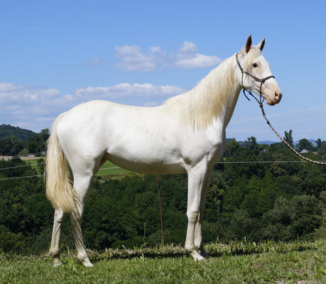 A l'heure actuel, à ma connaissance son seul descendant porteur de blanc est l'anglo-arabe Viconte des Neiges (qui est donc Tobiano + Dw20).