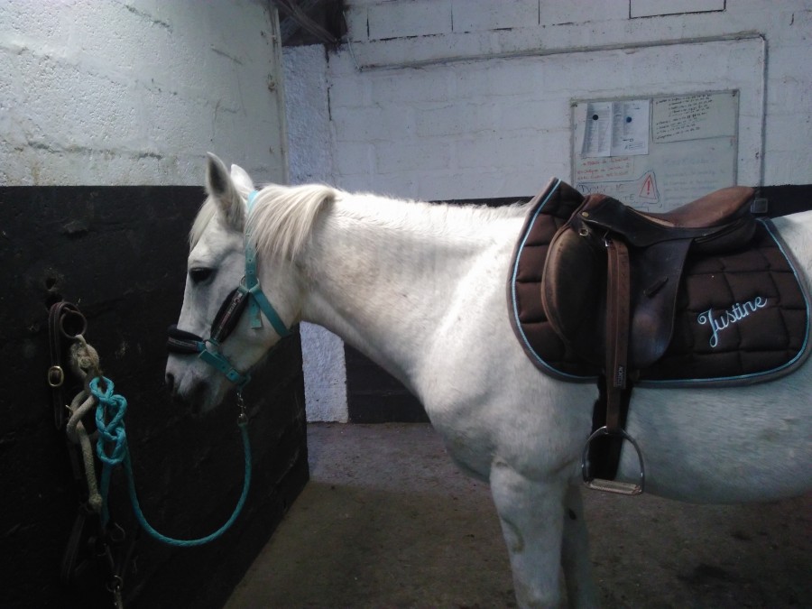 Lorsque j'arrive, une troisième fille qu'on nommera Y m'annonce qu'elle a pris son chouchou en DP club ! Nous avons une nouvelle monitrice depuis quelques temps, elle a mis en place ce système. J'ai eu un coup de coeur pour un cheval arrivé en Décembre, Grisou qu'on le surnomme. J'appelle ma mère et hop, cadeau d'anniversaire, je le prends en DP !