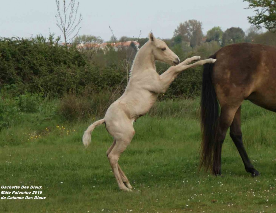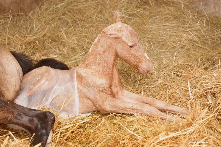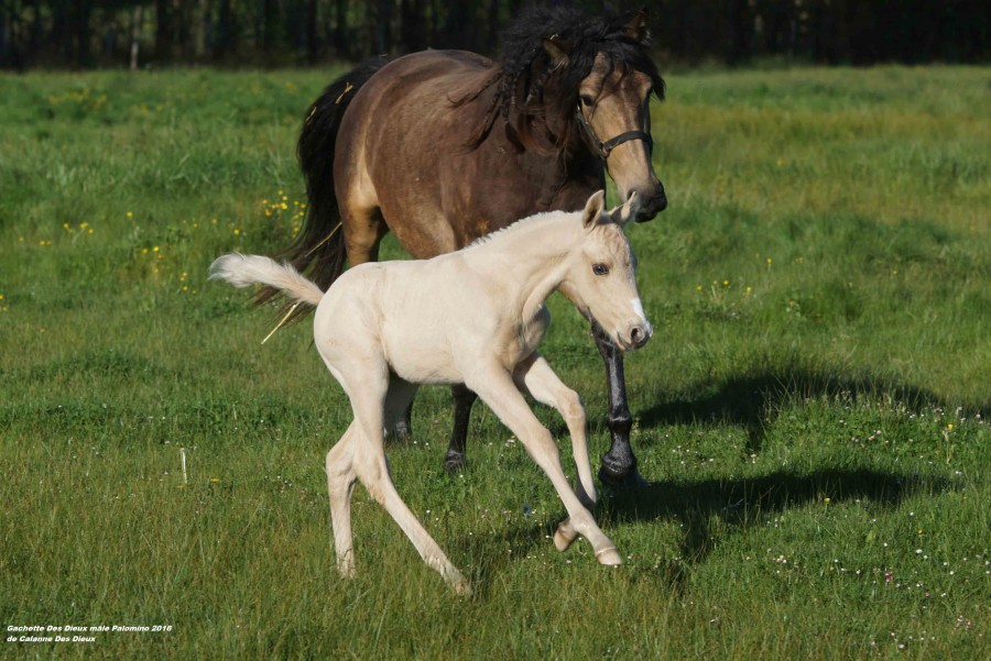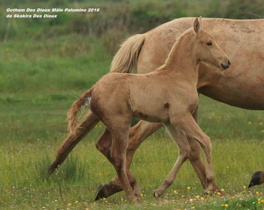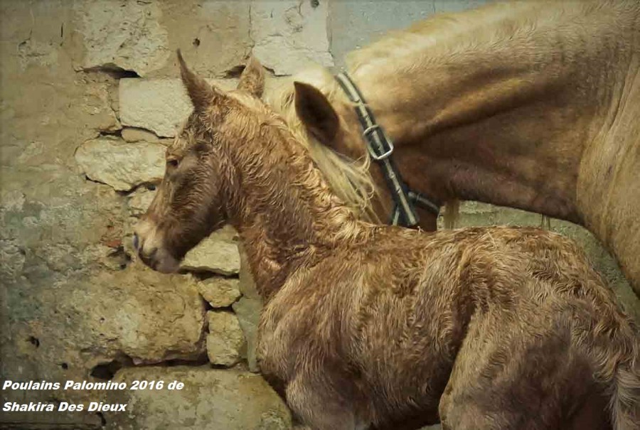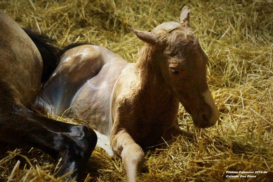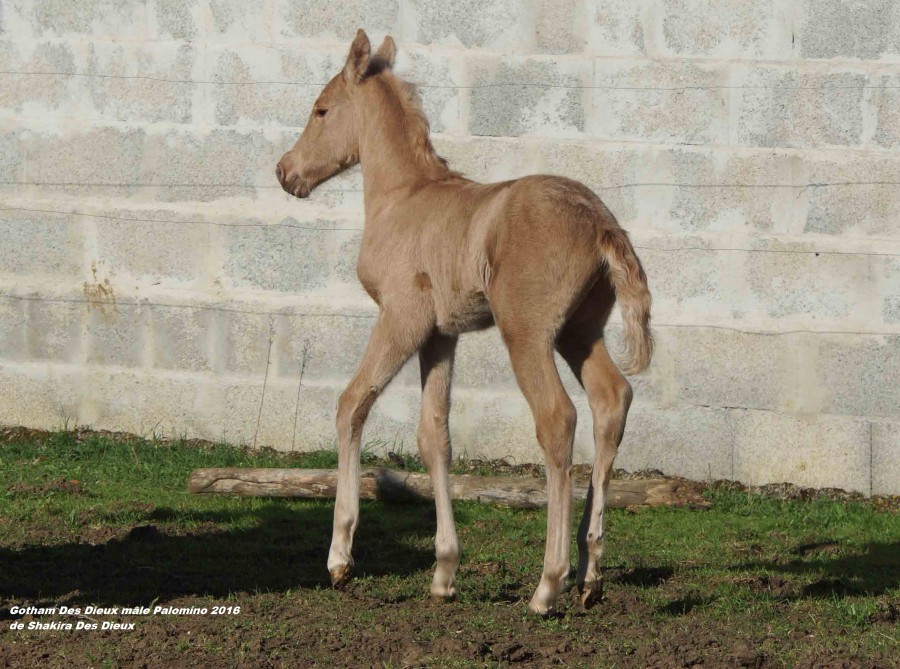Je vous présente " GOTHAM DES DIEUX " ( nom choisie par sa propriètaire puisque bébé était déjà réservé ) .Un très grand mâle Palomino doré PP Race Crème fils de Shakira Des Dieux et de Ice Dream One . Bébé est né le 10/04/2016 à 22 H 40 .