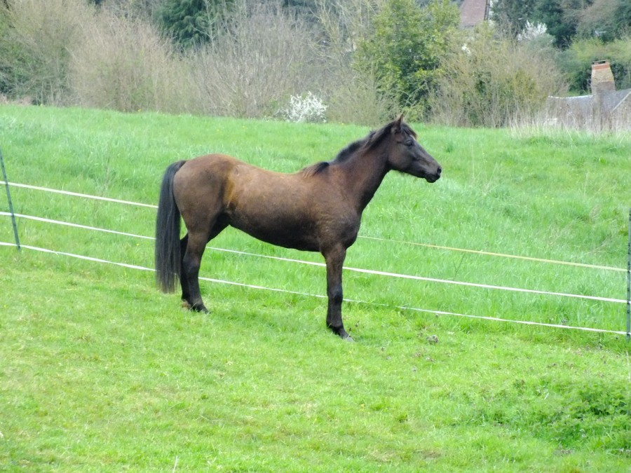 Physiquement, le cheval est en état, mais très fin, ça me fait un peu penser à des carences quand il était plus jeune, il n'est pas du tout "éclaté". En même temps, il aura 5 ans cette année et est débourré depuis 6 mois, donc pas méga musclé. Sinon, physiquement, il semble plutôt harmonieux, pieds un peu courts mais il n'était pas gêné quand je le montais. Niveau caractère, il ne bouge pas au pansage, se laisse attraper sans souci au pré, est plutôt câlin, donc nickel !