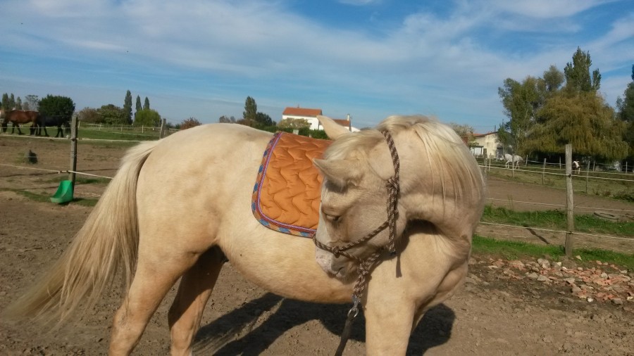 J'ai un palomino. Le bleu ca va bien sur un palomino... le orange petard, beaucoup moins. Le rouille passe encore.