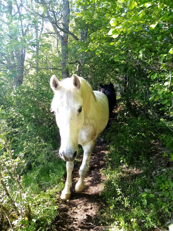La dernière heure a été la plus dure, j'avais mal aux pieds et Baroudeur s'arrêtait tout le temps pour regarder le paysage et derrière lui, en mode "on rentre maintenant ?".