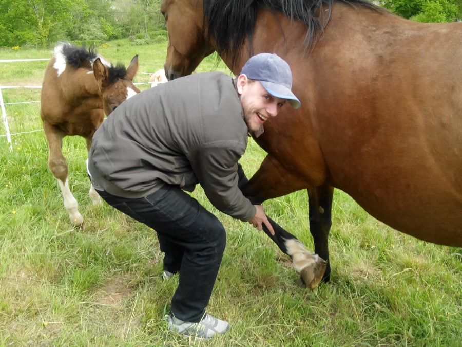 Ayant un homme parfaitement parfait et pas cavalier pour un sou, il m'a fait le plaisir de vouloir apprendre à monter à cheval pour pouvoir m'accompagner lors de graaandes balades ! Déjà propriétaire d'une jument de 5 ans, d'un poney de 3 ans et d'une ponette de 16 ans, l'homme a souhaité devenir propriétaire à son tour à ma plus grande joie (quel bonheur de partager cette passion !)