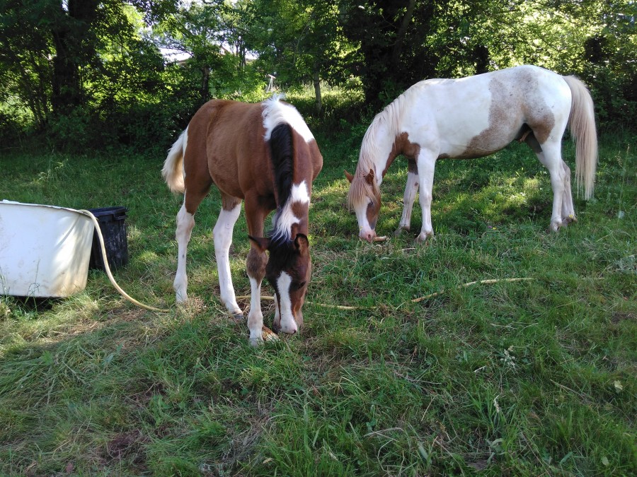 Donc pour résumer brièvement, mon homme à souhaiter acquérir un cheval afin de m'accompagner en balades. Après de longues recherches sur internet et une seule visite pour une jument. Quelques jours plus tard voici donc Nescafé et Granola qui rejoignent notre petite famille en ce dimanche 1er mai 2016.