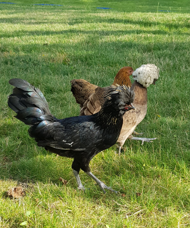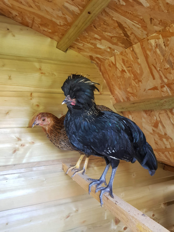 Il est méga méga collé a ma Wyandotte, la hollandaise le chasse légèrement, et ma pékin couve toujours