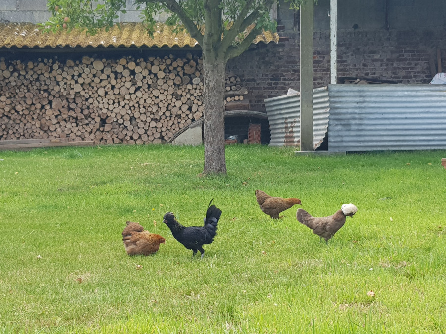 Il ne passe toujours pas devant moi quand j'ouvre le poulailler mais ne s'enfuit plus comme un taré dans tous les sens quand il nous aperçoit. C'est déjà un gros progrès