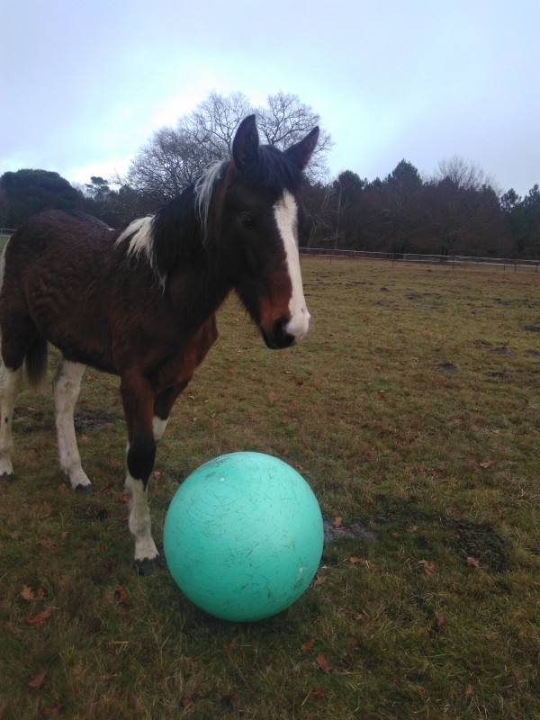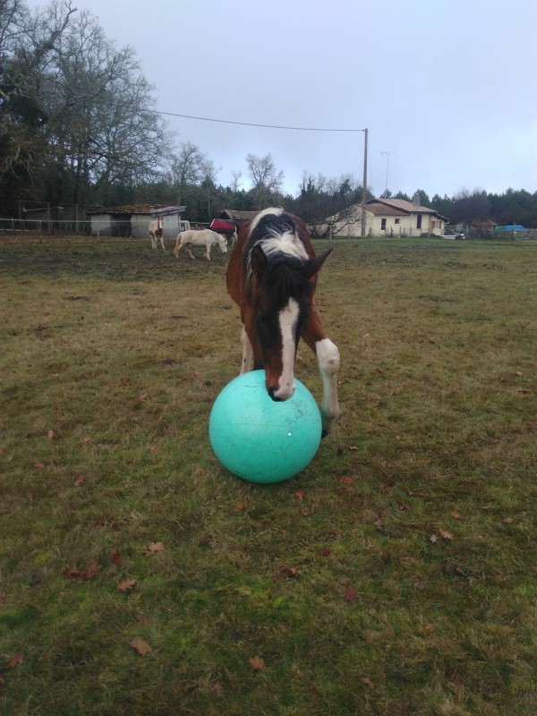 1 tour de carrière à coté d'Olympe des 2 cotés, j'ai fait faire à Gajar quelques petits cercles pour s'éloigner de sa maman, puis on est allés voir de plus près ces cubes en plastique qui faisaient si peur au début.