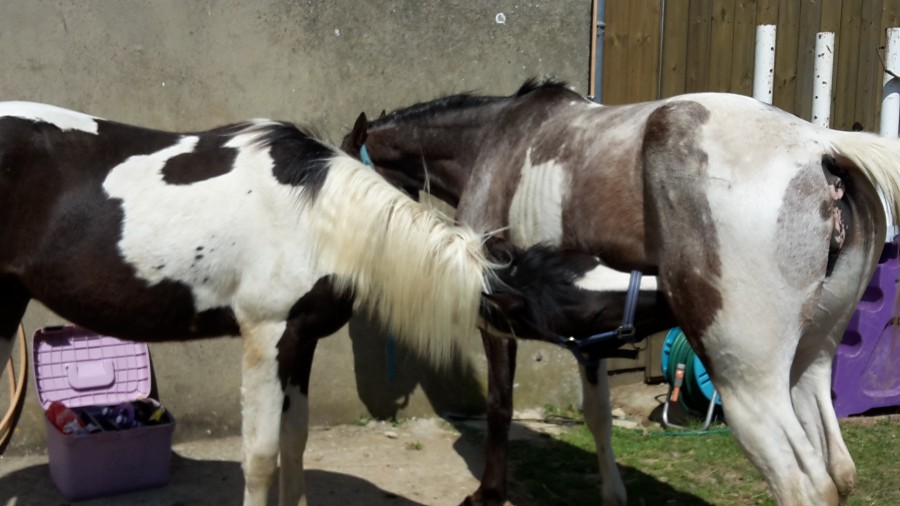 J'ai voulu aller lui faire les pieds hier mais j'ai abandonné, il était anxieux car la jument était loin et je n'ai pas voulu le contraindre de trop dans ses premier jours.