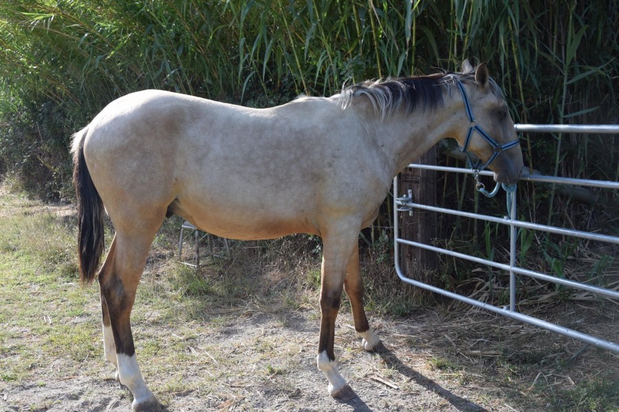 Le 1er antérieur a bien commencé, puis l'impatience a pris le dessus, il a voulu cabrer pour se libérer, mais Fleur a tenu bon, et petitou s'est vite calmé... pour le second antérieur, il a plongé son nez dans l'herbe et a été super mignon !