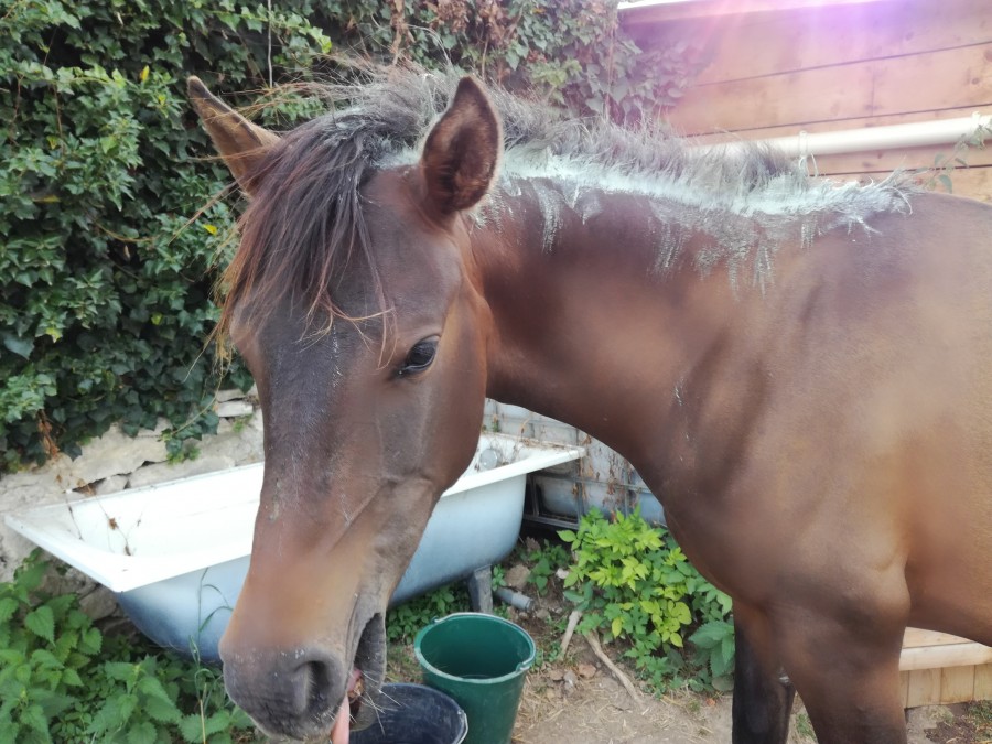 Je lui ai fait un bain de Sebacil à l'éponge ce midi et je vais lui faire un cataplasme d'argile verte ce soir sur la crinière, j'espère que cela va la soulager. Ses crins sont tous secs et rêches, quelqu'un aurait un produit à me conseiller ?
