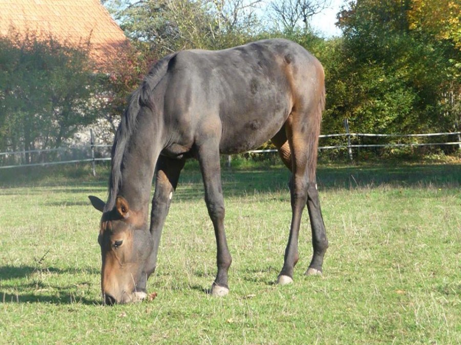 Elle est dans 5ha, avec un troupeau (dont un cheval qui ne se laisse pas attraper).