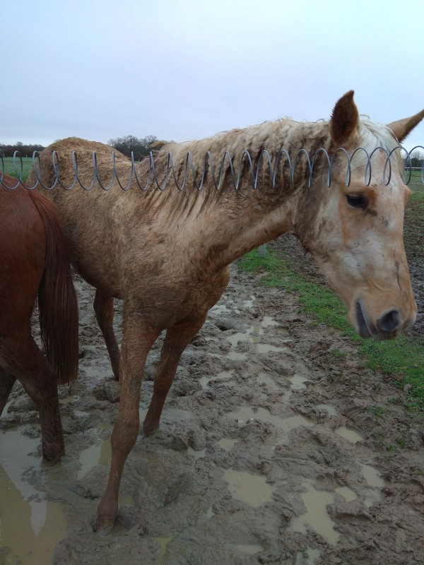 on reparle de la boue jusqu'aux genoux chez moi? XD un mois qu'il pleut quasi non stop! Graine adore se rouler, je désespère de voir sa robe un jour XD ceci dit, nada niveau maladie, elle ne fait ni gale de boue ni abcès ni rien, tant mieux! (je pense que le fait de rentrer la nuit aide)