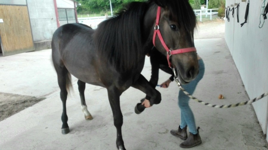 Vicky à les antérieurs bizzares, sole friable surtout au niveau des barres, et tout le long de la ligne blanche il y a des filaments qui dépassent, quand je tire dessus c'est élastique! On dirait que c'est les lamelles qu'il y a sous la paroi du sabot ??? elle n'a pas l'air d'avoir mal et elle boite pas,... mais c'est très bizarre, comme si la sole ne recouvrait plus.