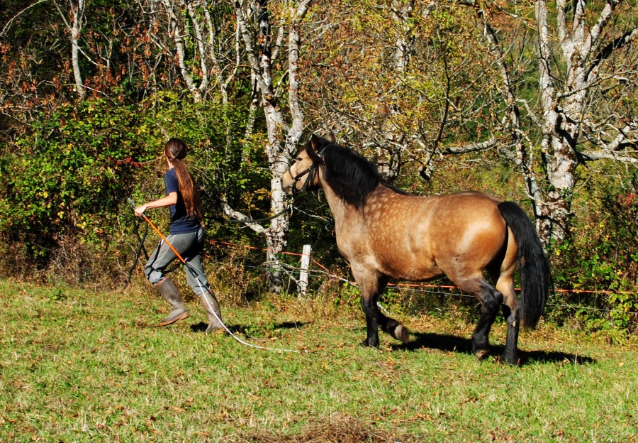 En attendant pour cet hiver on va reprendre un léger boulot en complément des randos ... On a très très peu "bossé" depuis le printemps , on commence à travailler l'envoi sur le cercle mais ils sont très collés à nous . Je pense travailler prochainement les cessions droite gauche avec le side , en bas avec la longe , la mobilisation des épaules , et puis je sais pas trop quoi d'autre pour l'instant ...