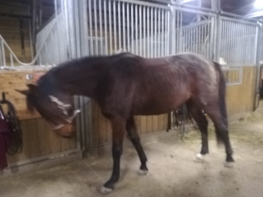 Lorsqu'il nous voit dans le village , voit la chienne , ou nous entend , Ginko hennit X fois, arrive a fond , il appelle jusqu'a ce qu'on arrive , puis une fois qu'on est la , il redevient aigri ...