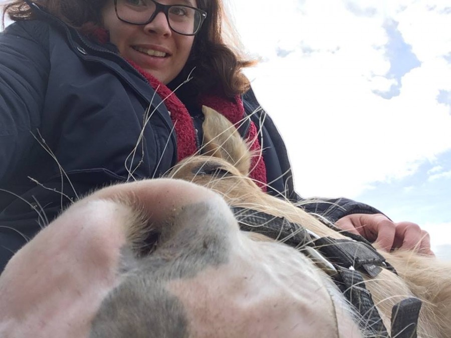 Je l'ai prise par le licol qu'elle a sur le nez (ça, ça ne lui pose pas de soucis), et j'ai pris la longe que j'ai accroché au mousqueton, sans qu'elle ne bouge. J'ai renouvelé l'opération deux fois, en gratouillant et félicitant, et elle n'a pas bougé. Mais une fois lâchée, elle est partie et était méfiante envers mes actions sur la suite, et m'interdisant l'accès à sa tête.