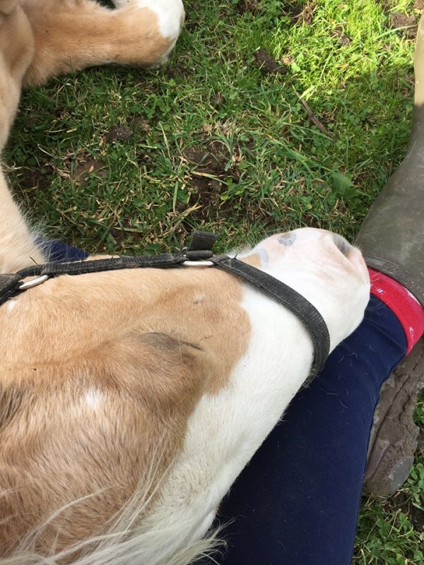 Mais une fois à côté d'elle, comme à son habitude elle s'est couchée la tête sur mes jambes et on a fait une petite sieste comme avant son sevrage !
