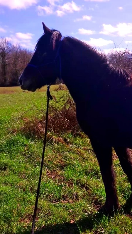 Chose que j'ai faite hier, sous un beau ciel, mais bien venteux... Bon... Ce n'était pas aussi parfait qu'avec Amelia, puce était quand même hyper nerveuse, j'ai essayé de rire, de la rassurer, de chanter