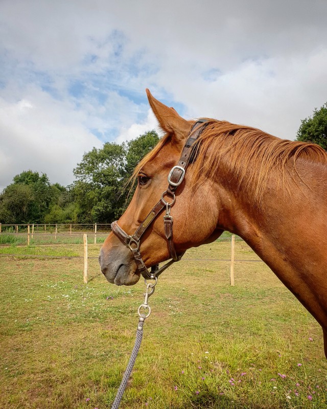 Jument un peu stressée à pied à l'arrivée mais nickel une fois montée. Bref, je suis très contente de ma Roussette