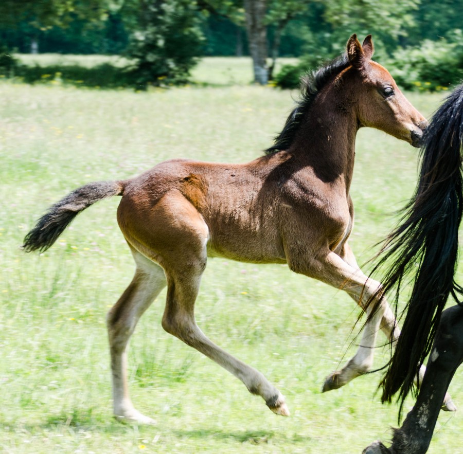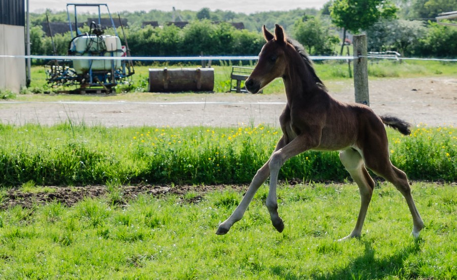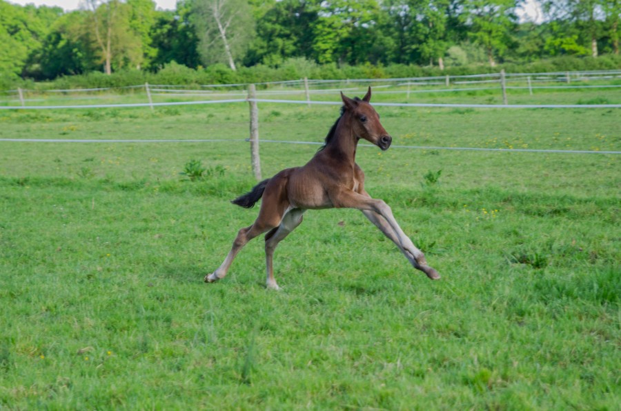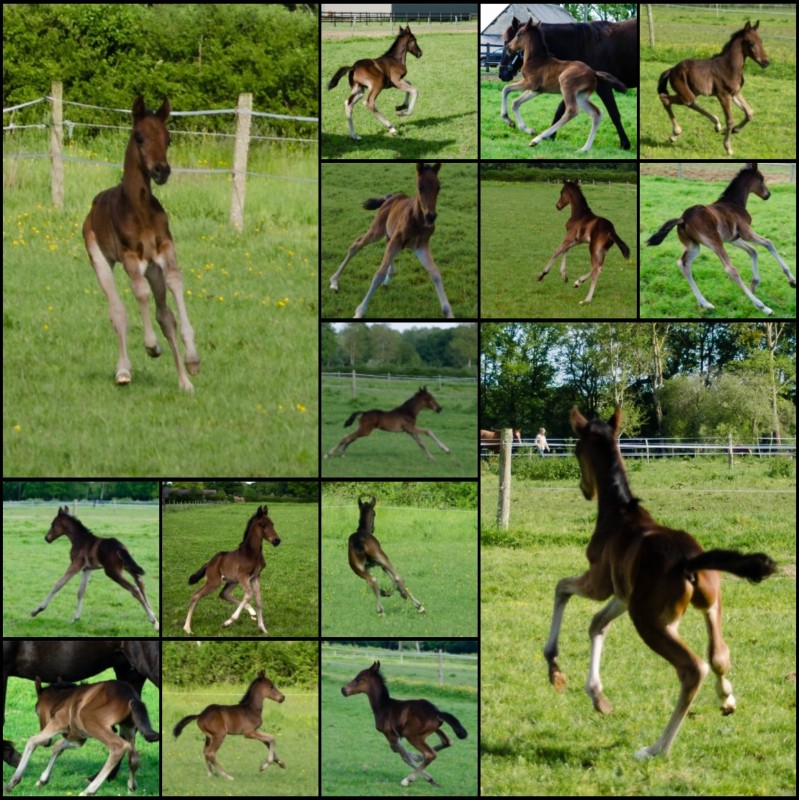 , c'est le fils de ma jument Quillange (TF) qui m'a fait redécouvrir ce que voulait dire monter à cheval et surtout travailler un cheval ! Le papa est Quaterbold du Payrol, un étalon de dressage oldenburg qui pour l'instant a bien corrigé certains points physiques sur ma jument, on verra dans 3 ans pour les allures...