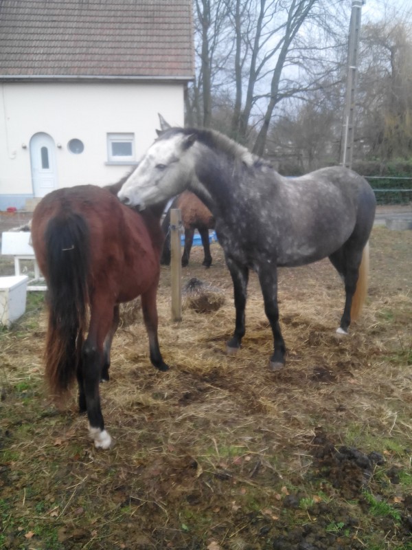 Vicky a arrêté de tousser au bout d'environ 3 semaines (10 jours d antibio puis injection de cortisone) par contre willow continuait de tousser + nez qui jette un peu,.. malgré anibio et cortisone on a fini à la clinique vétérinaire il y a deux semaines! finalement on m a redonner d'autres antibio qu'il a eu pendant 10 jours et on m'a dit que il allait certainement retousser et jeter dès l'arrêt,.. et que si c'était le cas il était ce qu'on appel un poulain "garderie" et qu'il fallait patienter le temps qu'il fasse son immunité,... (tant que pas de fièvre, bon appétit et état général bon évidemment) donc je ne m’inquiétais pas trop hier quand je l'ai ré entendu tousser un petit peu