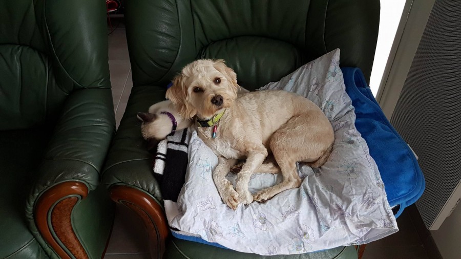 j'étais hyper heureuse, car sa me donner un sentiment de lui avoir fait du bien, (je l'ai masser un moment pour le détendre) je prend ça comme un remerciement, et ça me confirme que je l'ai pas tant traumatisé que ça (le séchoir fait beaucoup de bruits)