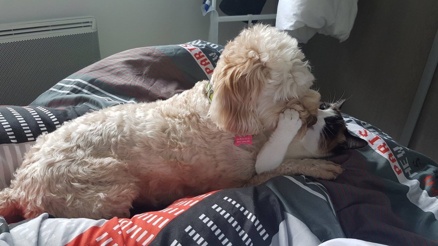 j'étais hyper heureuse, car sa me donner un sentiment de lui avoir fait du bien, (je l'ai masser un moment pour le détendre) je prend ça comme un remerciement, et ça me confirme que je l'ai pas tant traumatisé que ça (le séchoir fait beaucoup de bruits)