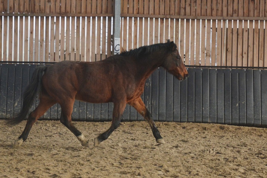 Il n'avais pas été monté de la journée, juste mis en liberté dans le manège pour se défouler et c'était folklo d'après la mono. Mais bon, j'ai quand même fait le minimum et il a surtout marché. Quand j'ai retiré mes étriers à la fin de l'heure, j'ai demandé à une pote où arrivait mes pieds. A ses genoux...