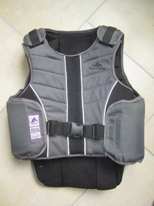 ... c'est suite à cette chute que mes parents avaient décidé d'investir dans un gilet de protection car j'avais peur de remonter à poney, je voulais monter que le gentil calme et mignon que tous les clubs ont ... mais c'est pas nous qui choisissons alors pour me rassurer ils m'en avaient acheté un et je l'ai gardé 7 ans avant qu'il ne devienne trop petit (on avait du prendre un peu grand niveau taille