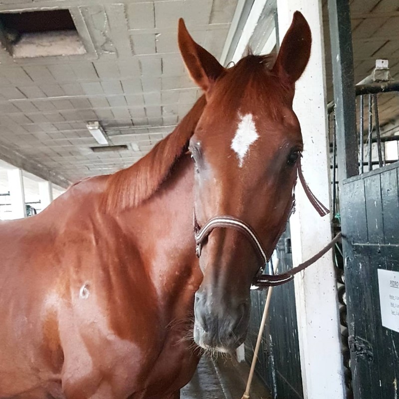 il est considéré comme le cheval test car il ne se laisse pas faire avec les jeunes, à partir du galop 4 on arrive à le gérer; mais du coup il est jamais mis sur la main