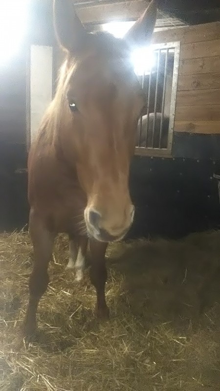 hier k-ti est venue nous rendre une petite visite à la maison (c'était super sympa d'ailleurs!) après avoir fait connaissance avec les bestioles de l'intérieur et un gros câlin -passage obligé- à Baïkal, elle a pu constater à quel point Baroudeur est une terreur sauvage et oh combien il faut être dur avec lui pour obtenir quelque chose lol petit progrès pour monsieur, j'ai passé une longe autour comme une sangle autour de lui et j'ai légèrement serré (j'ai fermé ma main quoi) deux petits pas et c'était bon, je vais le laisser un peu tranquille avec ça, vu la bonne réaction.