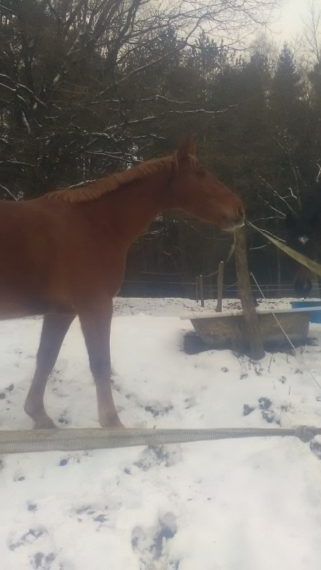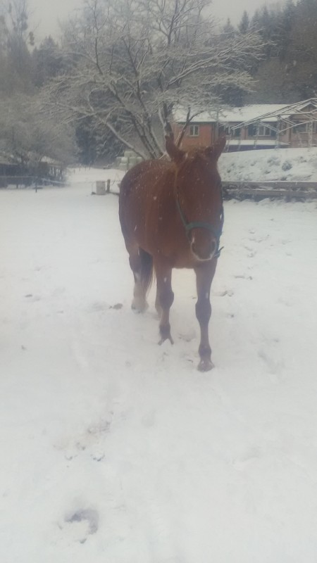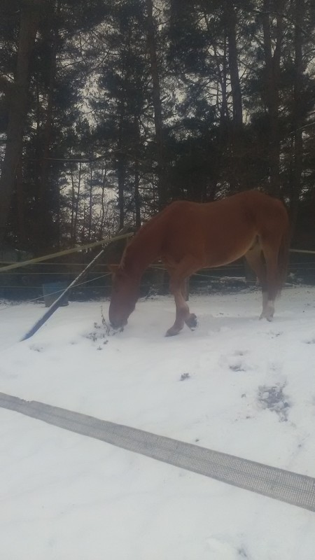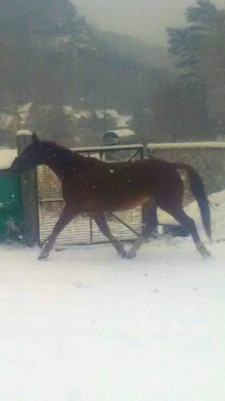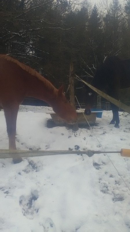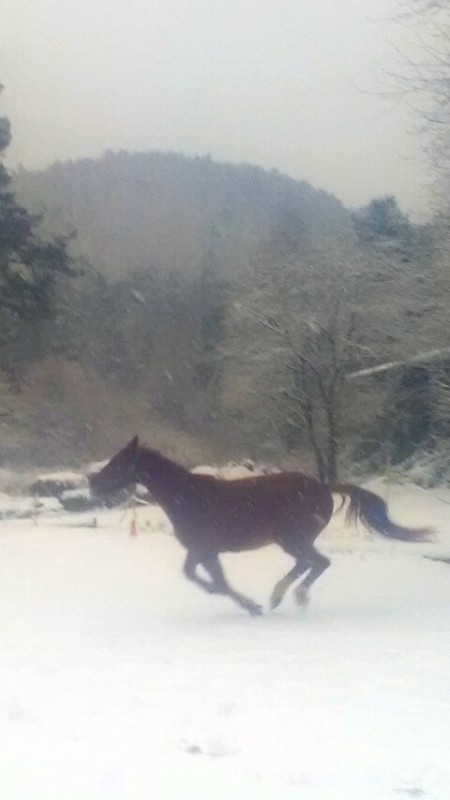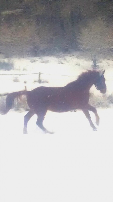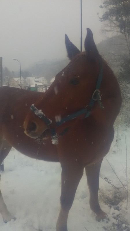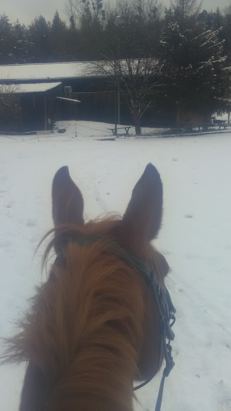 Encore de gros câlins plus tard (absolument obligatoires les bisous en fin d'exercice !) on est allés dans le champ de neige qui est la carrière en temps normal, et en selle!