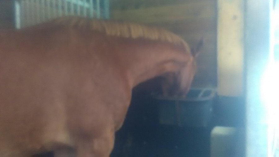 Juste un petit ''non'' de la part de Baroudeur qui n'a pas aimé que je lui demande de reprendre le pas alors qu'il observait un poney, ce qui chez lui se traduit par un pas plus rapide et un ou deux grands coups de tête pour reprendre la main.. autant dire qu'on a vu plus foudroyant comme réaction!