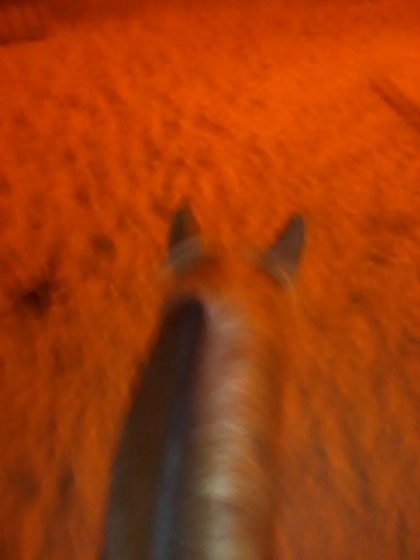 Niveau sensation ça envoie! je dois pas mal le tenir dans les jambes, le manège est un peu petit pour lui, 20*40, mais Baroudeur a un bon équilibre il arrive à me faire le tour sans perdre l'allure ; il fait de grandes foulées du coup j'arrive à rester assez facilement dans ma selle, c'est génial de sentir cette puissance très maîtrisée qui se met en mouvement... faut imaginer mon sourire jusqu'aux oreilles !