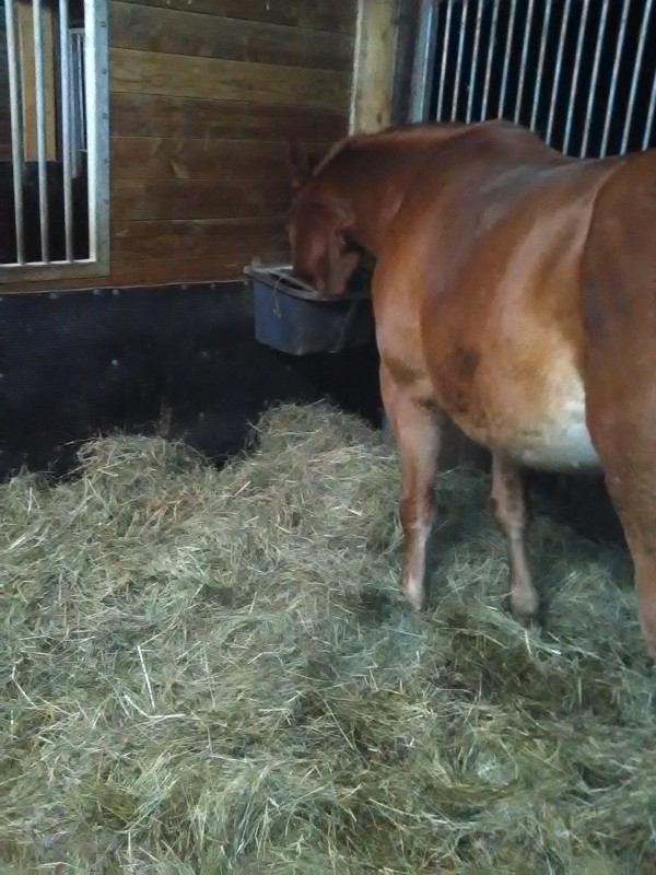 aujourd'hui retour au boulot ! Après les bisous d'usage, j'ai tenté de panser le beau... ce fut épique ! Baroudeur était très stressé il ne tenait pas en place et bougeait beaucoup... au bout d'un moment de patience infinie, on est descendus au manège où je l'ai lâché pour qu'il puisse se défouler, et bon sang qu'il en avait besoin !