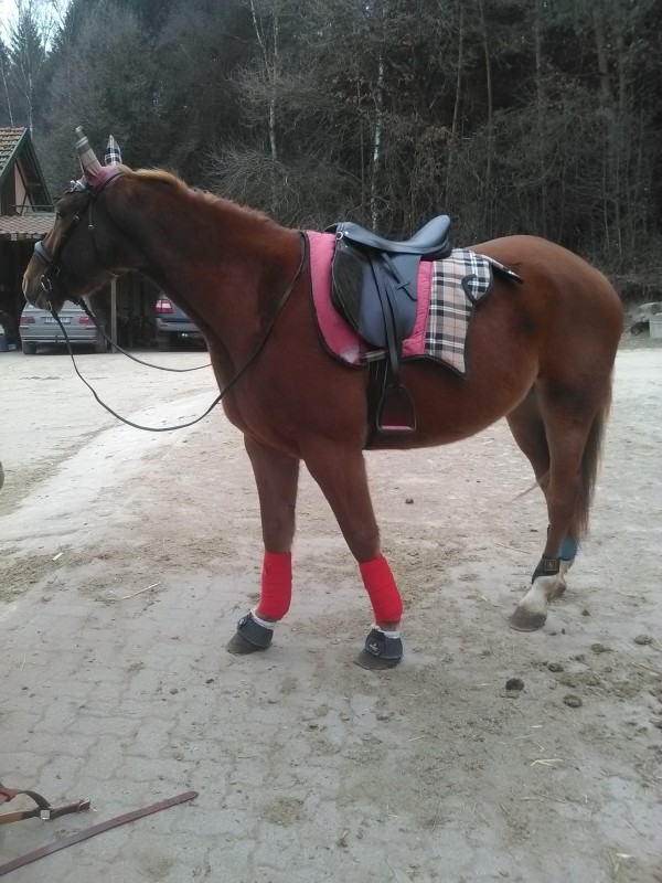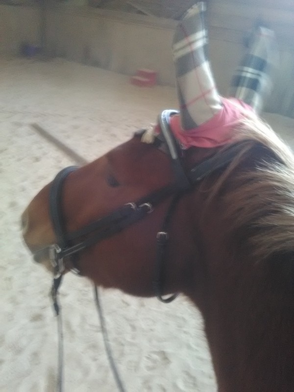 On a également passé notre premier obstacle (30cm en croisillon) au trot! j'y suis allée sans les mains c'est à dire que j'ai laissé mes rênes à la sortie du tournant et que je l'ai laissé gérer son saut comme en liberté, effectivement il décapsule.. bien 40cm au dessus de la barre lol du coup aucun risque de prendre un mauvais suivi dans la bouche, j'avais juste du mal à l'empêcher de couper le manège pour y retourner une fois franchi deux fois dans chaque sens.. on a fini au pas rênes longues au calme avec une grande quantité de gratouilles et de félicitations.