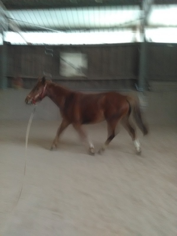 Baroudeur est toujours aussi impressionnant dans sa compréhension, maintenant il cède dès que je prends du contact au pas ( je précise que je commence rênes très longues et qu'il engage naturellement beaucoup.) au trot il commence aussi à chercher la main.