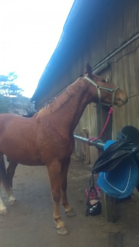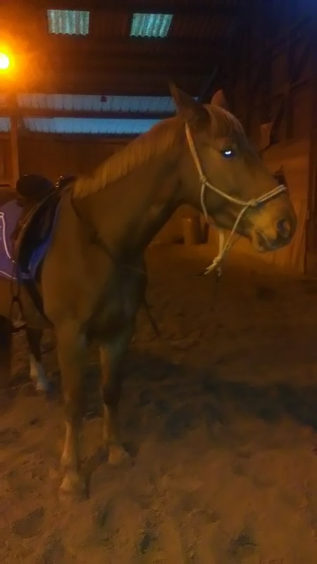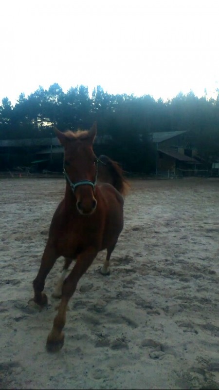 Au bout d'un moment je l'ai passé au trot où il se deconcentrait un peu et souhaitait me faire savoir que galoper c'est bien aussi, et que l'option coup de cul de frustration existe toujours... Au bout d'un moment à trotter aux deux mains il a accepté de se ranger à ma décision tout de même.